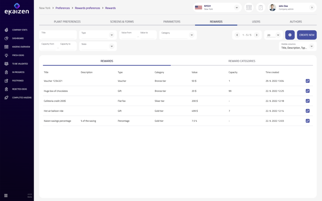 Bring your current reward system into eKaizen with a few clicks. Set up reward categories, their types and values. Giving money? We can do that. Handing out vouchers and gift cards? eKaizen can handle those too!